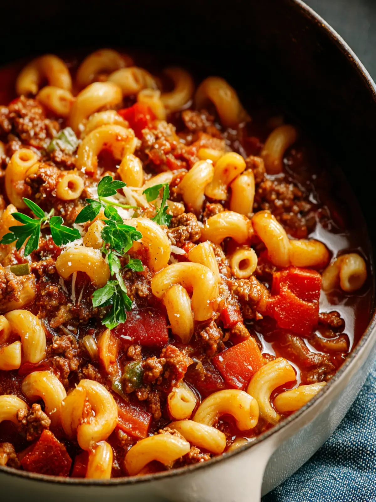 A hearty and comforting dish made with ground beef, macaroni, and a savory tomato sauce.