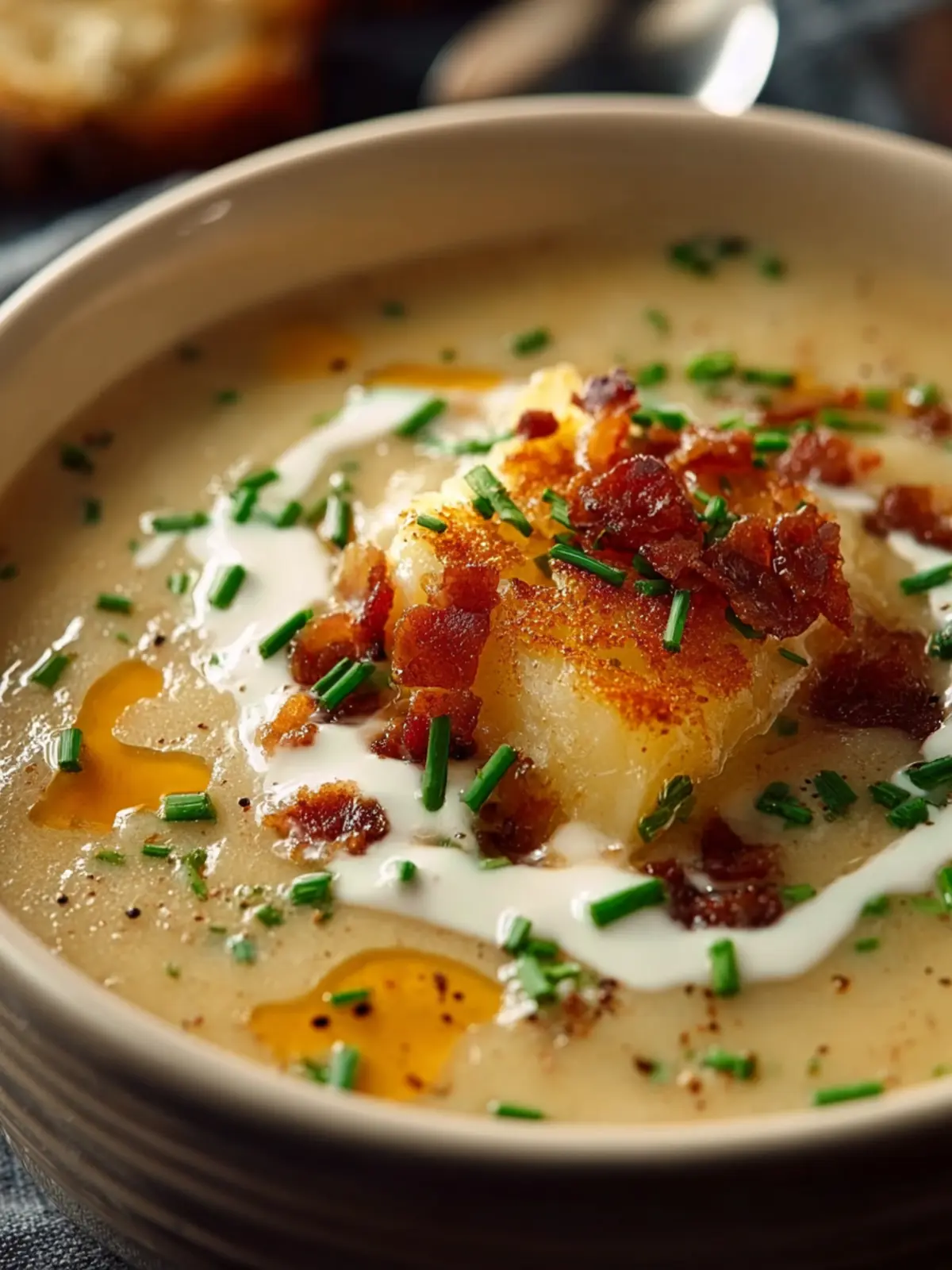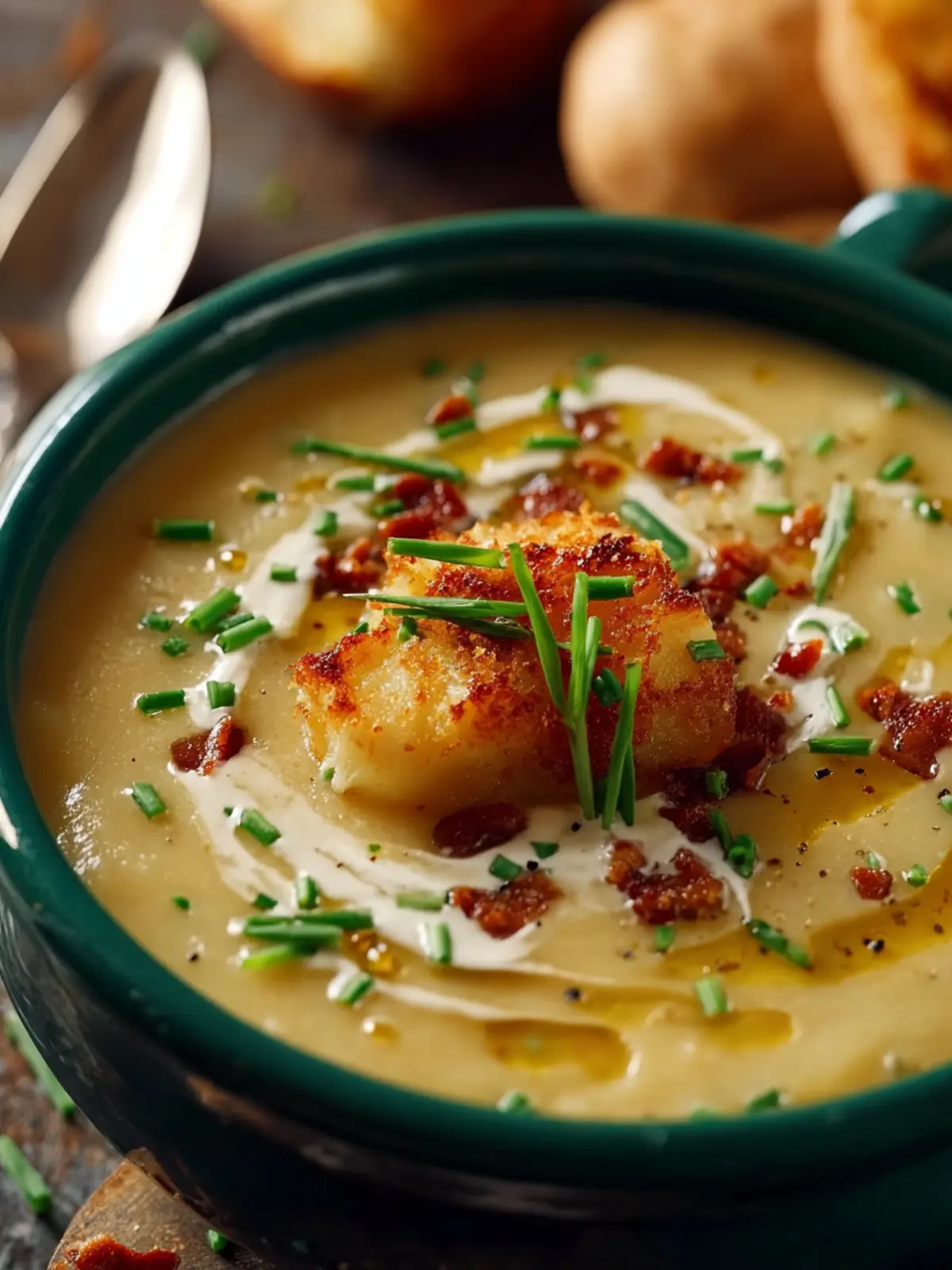 This recipe combines the soft, buttery texture of baked potatoes with a creamy broth, enriched with ingredients that elevate it beyond the everyday. Picture chunks of tender potatoes, a hint of cheddar cheese, crispy bacon bits, and fresh chives, all harmonizing to create a dish that feels like home.