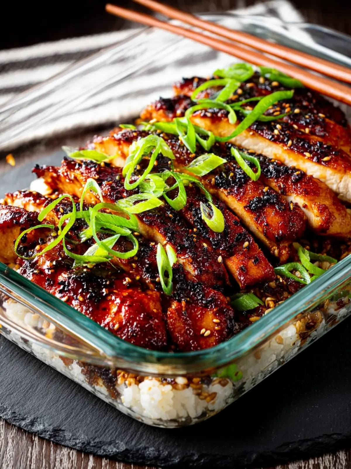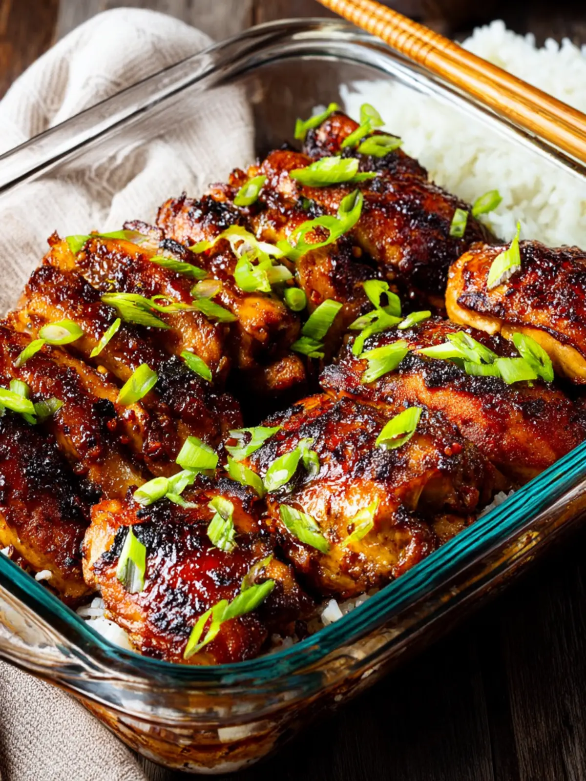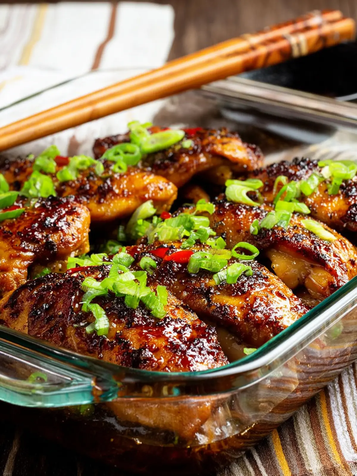 Delicious baked chicken glazed with homemade teriyaki sauce, garnished with green onions.