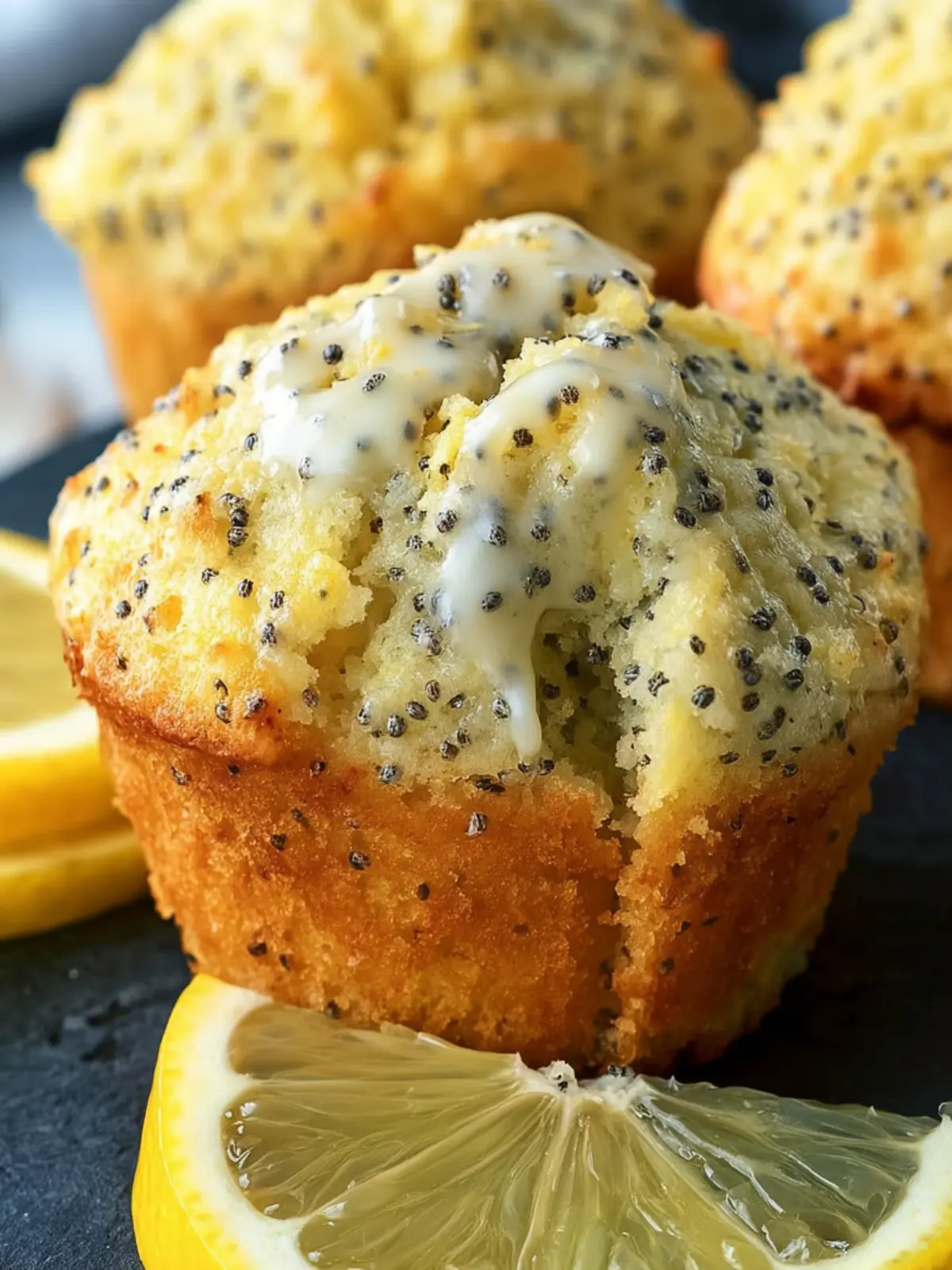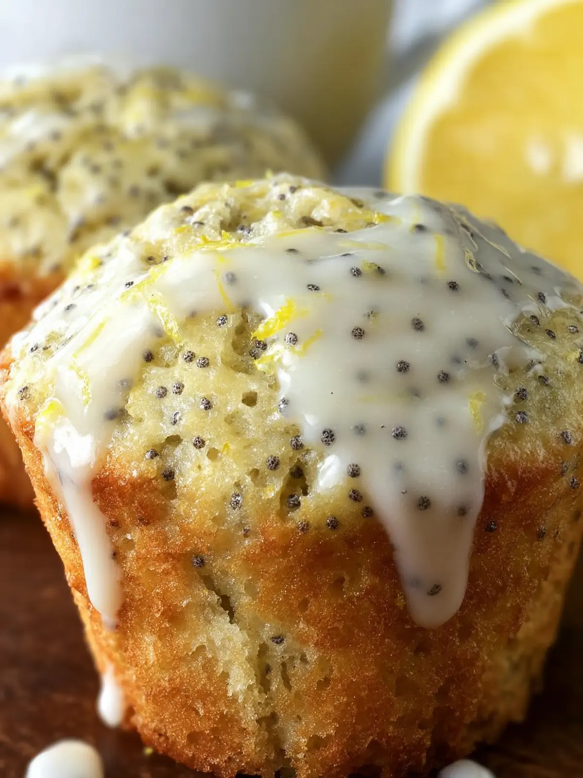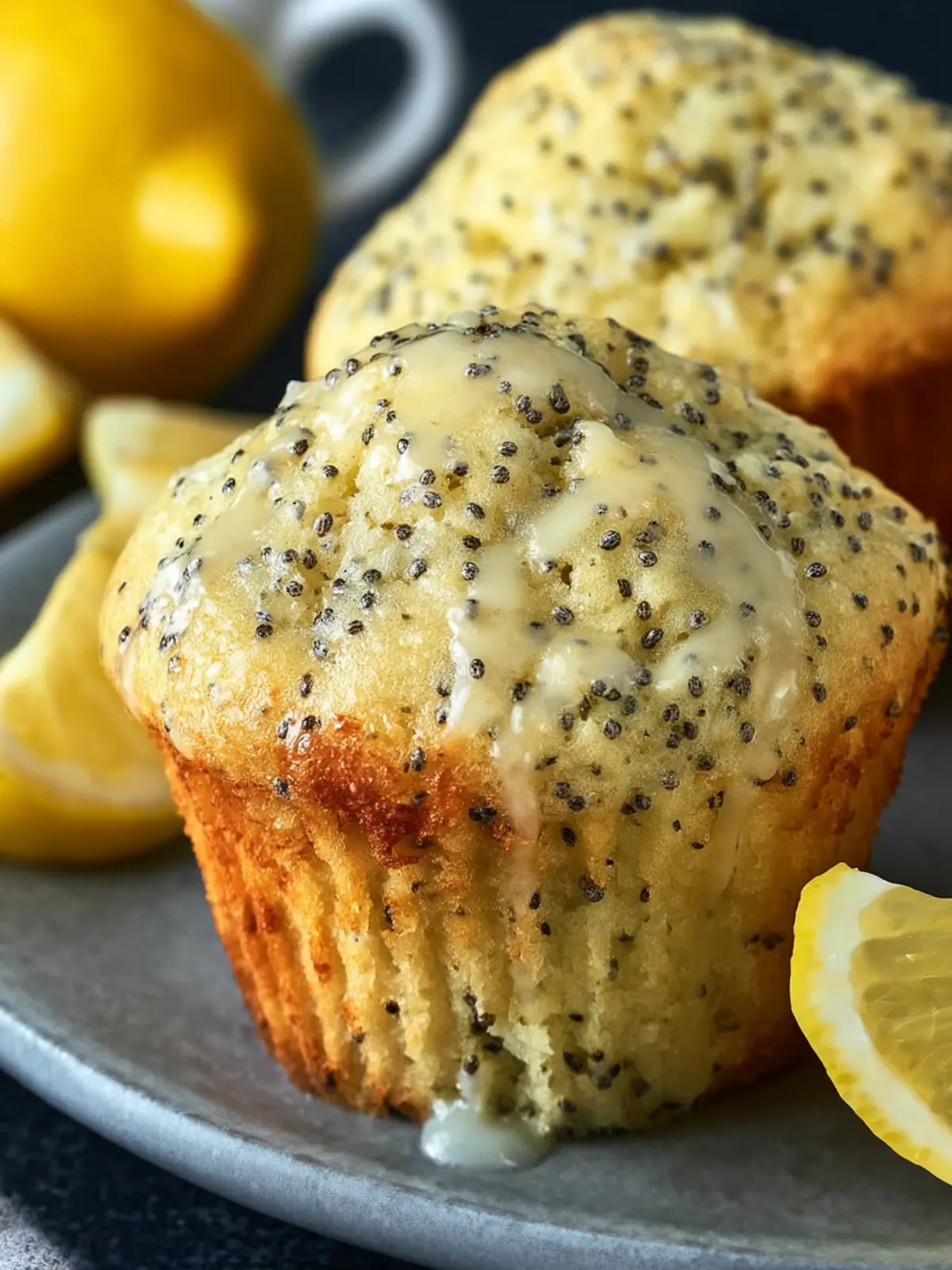 Deliciously fluffy lemon poppy seed muffins with a sweet glaze.