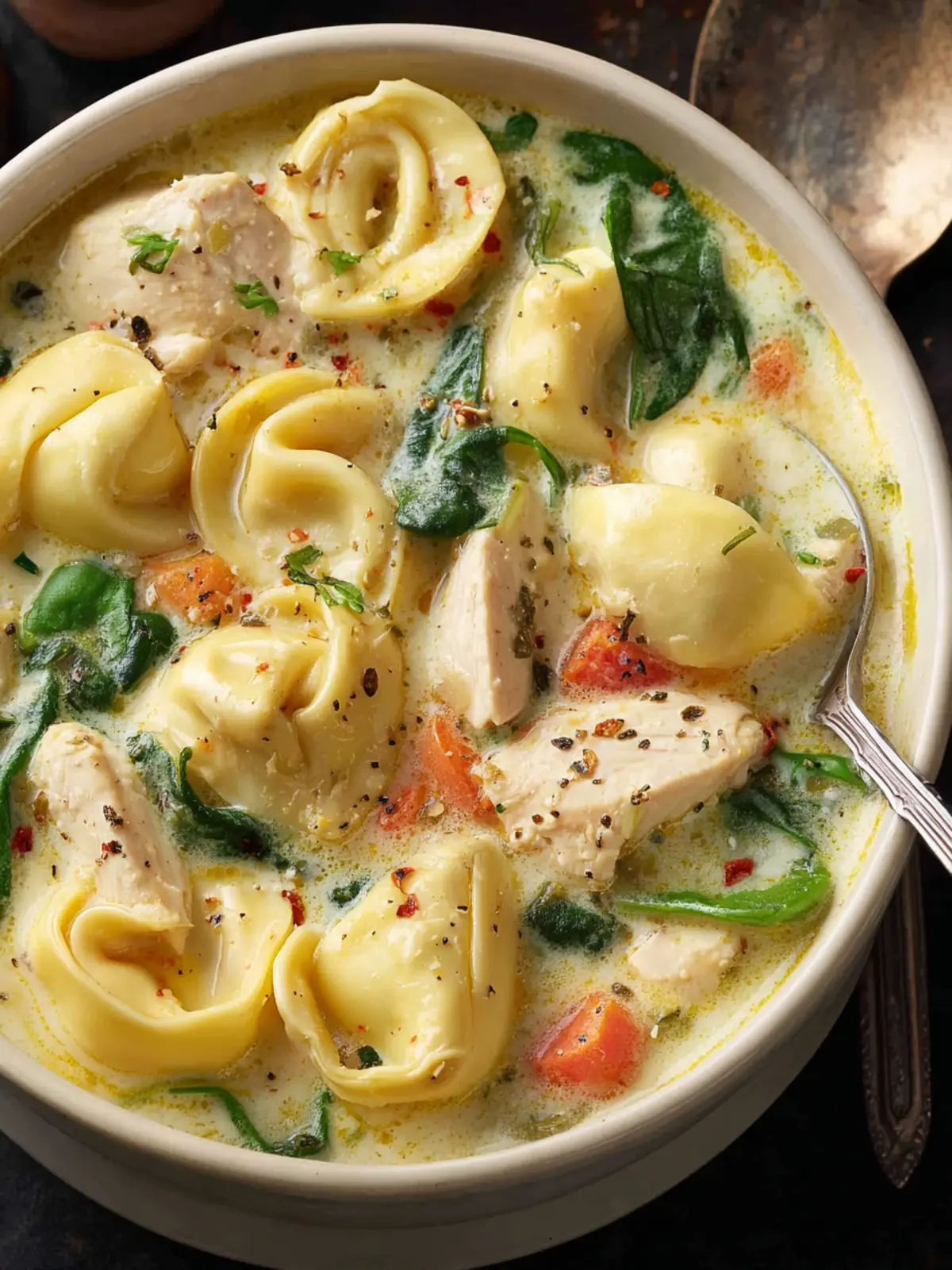 Warmth and Comfort: There’s something genuinely heartwarming about slurping down a bowl of rich, creamy goodness. The smooth texture of the broth paired with soft, pillowy tortellini and hearty chicken evokes feelings of nostalgia, transporting you back to home-cooked meals from childhood.