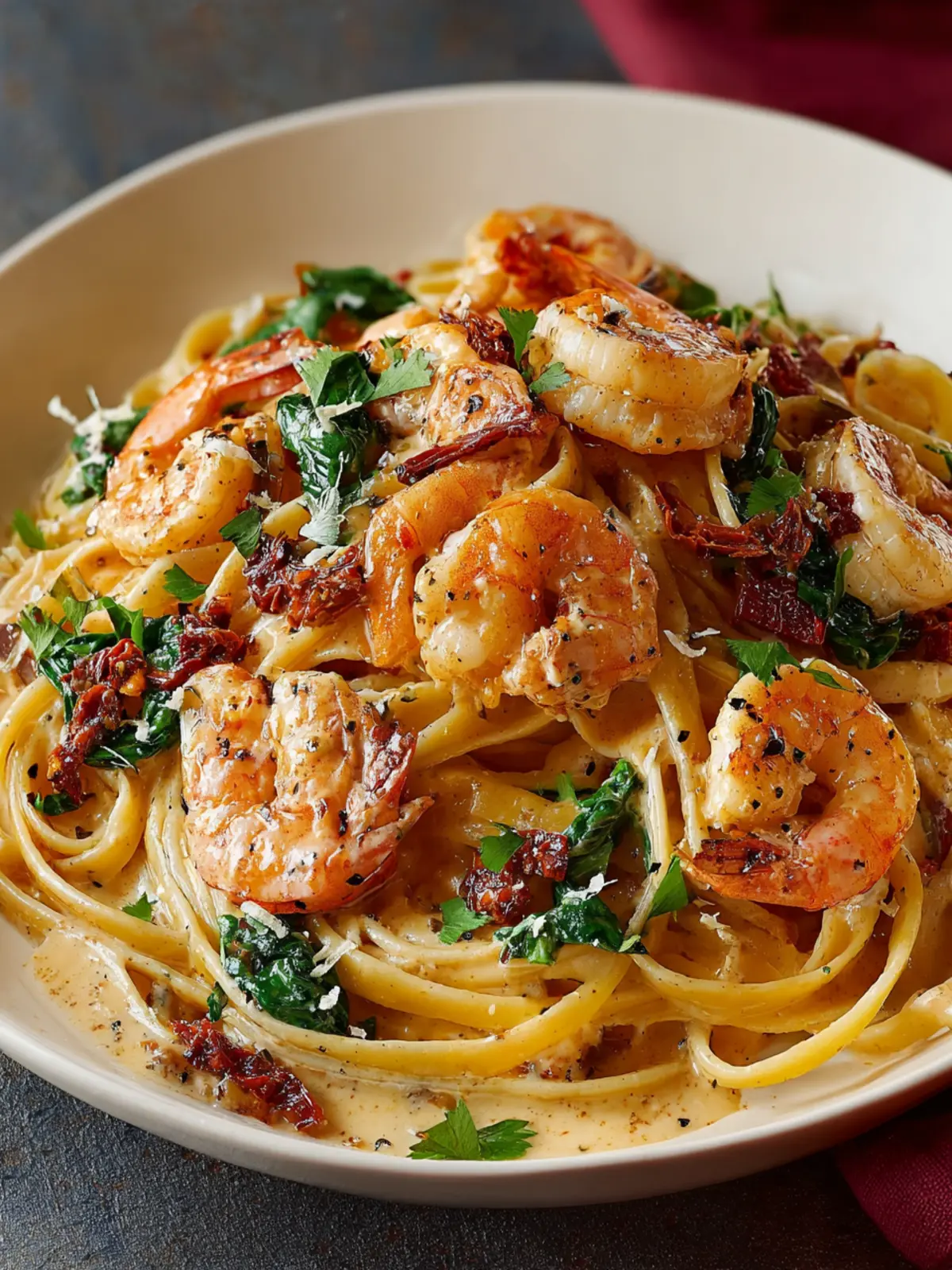 Creating your own creamy sun-dried tomato shrimp pasta is not just a culinary endeavor; it’s a delightful journey that transforms your kitchen into a sanctuary of rich flavors and vibrant colors. The combination of succulent shrimp, tangy sun-dried tomatoes, and luscious cream creates a dish that beckons with every twirl of pasta. Whether you’re impressing friends during a dinner party or enjoying a cozy night in, this recipe is a perfect choice. Remember, the beauty of cooking lies in customization—feel free to adjust ingredients to suit your taste. Enjoy every bite as you savor both the flavors and the experience!