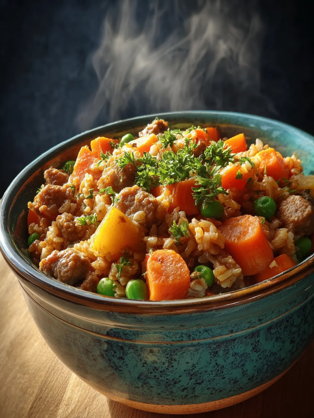 A delicious and easy crockpot recipe combining ground turkey, brown rice, and vegetables.