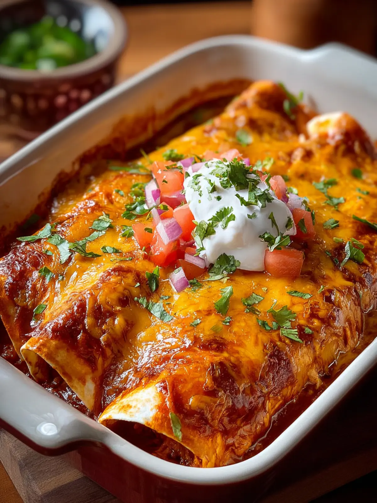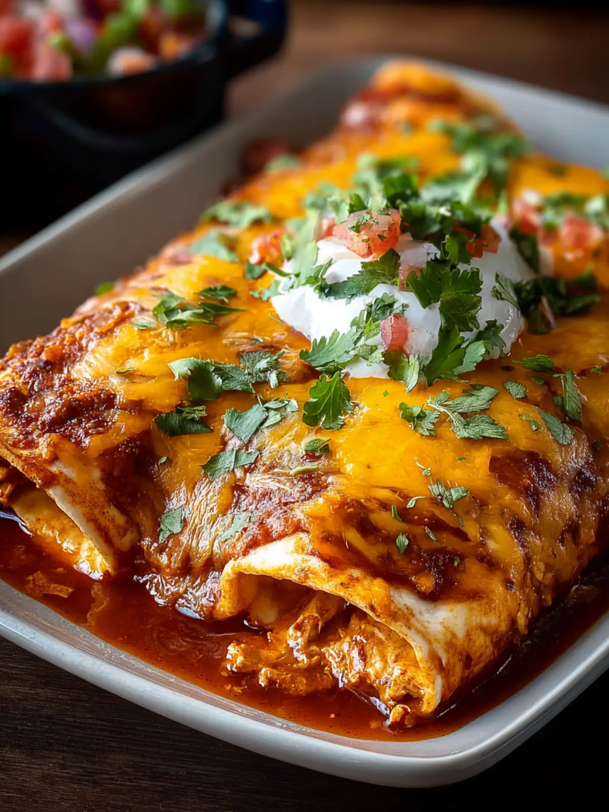 - Sour Cream: Pour on some cool sour cream for a creamy contrast to the spicy enchiladas.
