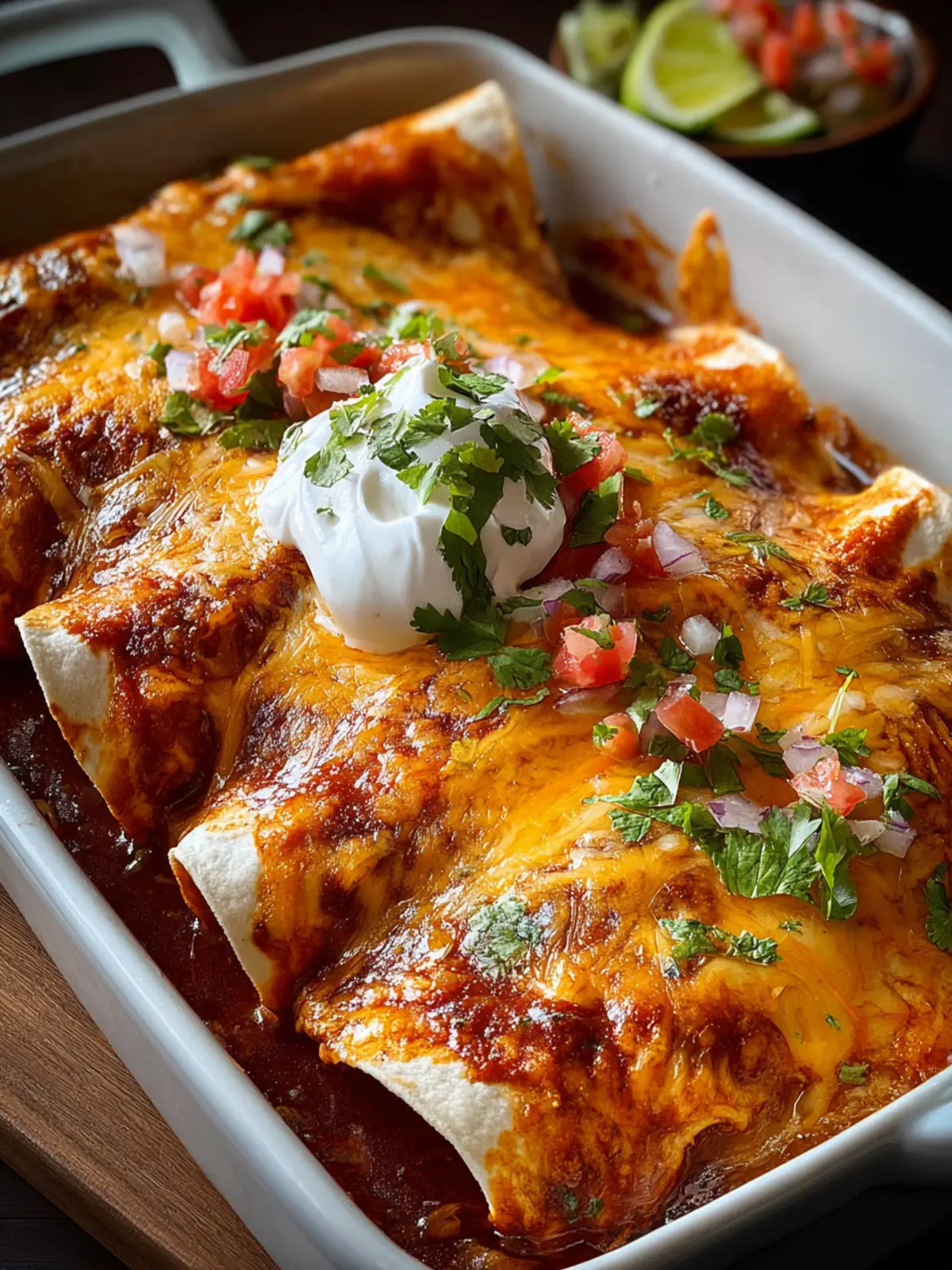 Toppings can transform your dish. Fresh cilantro, diced tomatoes, and a squeeze of lime add brightness to the rich flavors of your easy chicken enchiladas. Enjoy the vibrant colors and flavors!