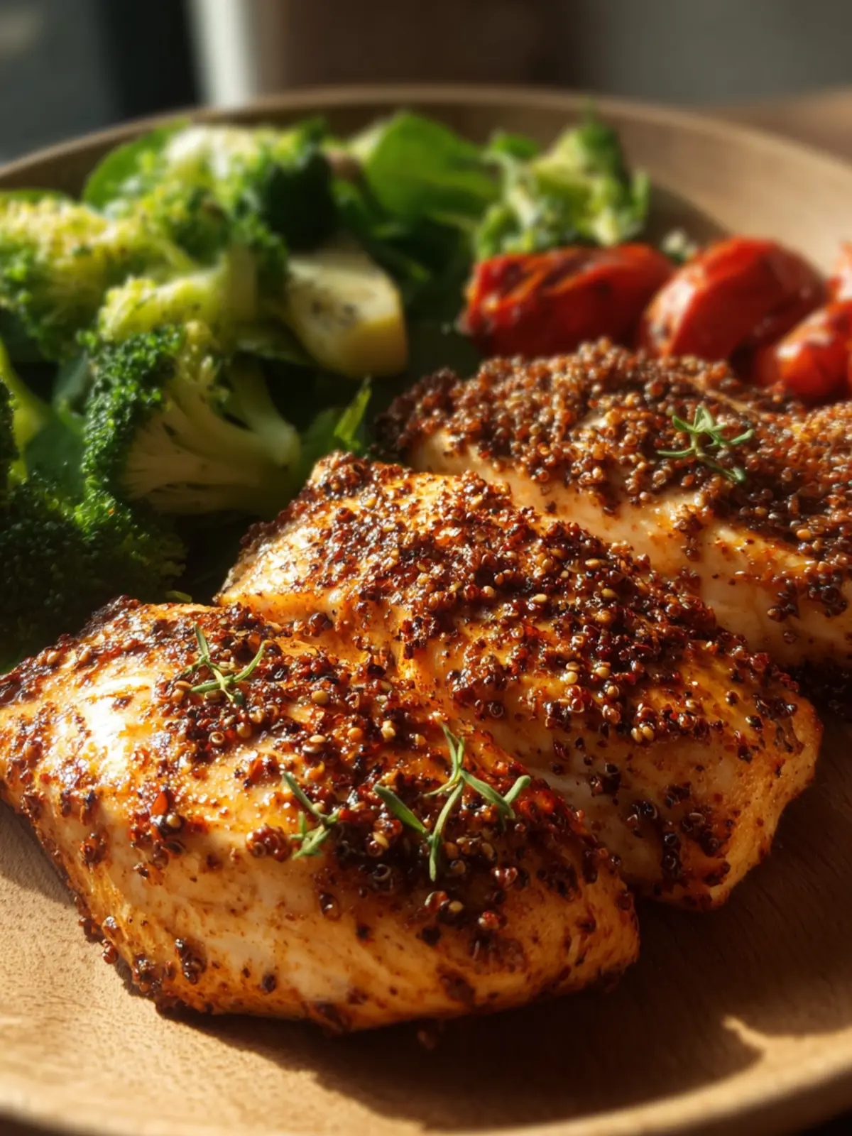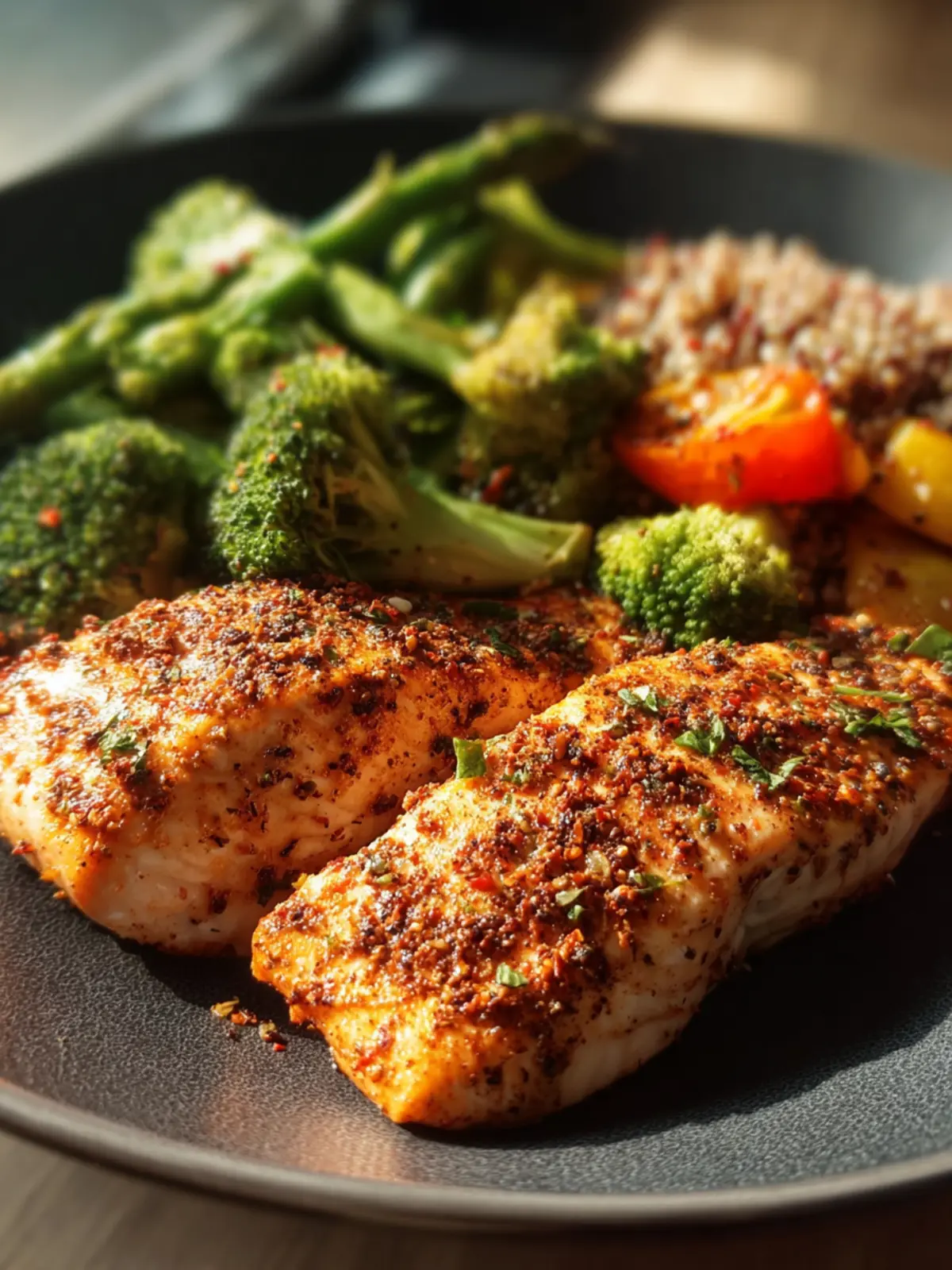 - Serve chicken with quinoa and broccoli.
