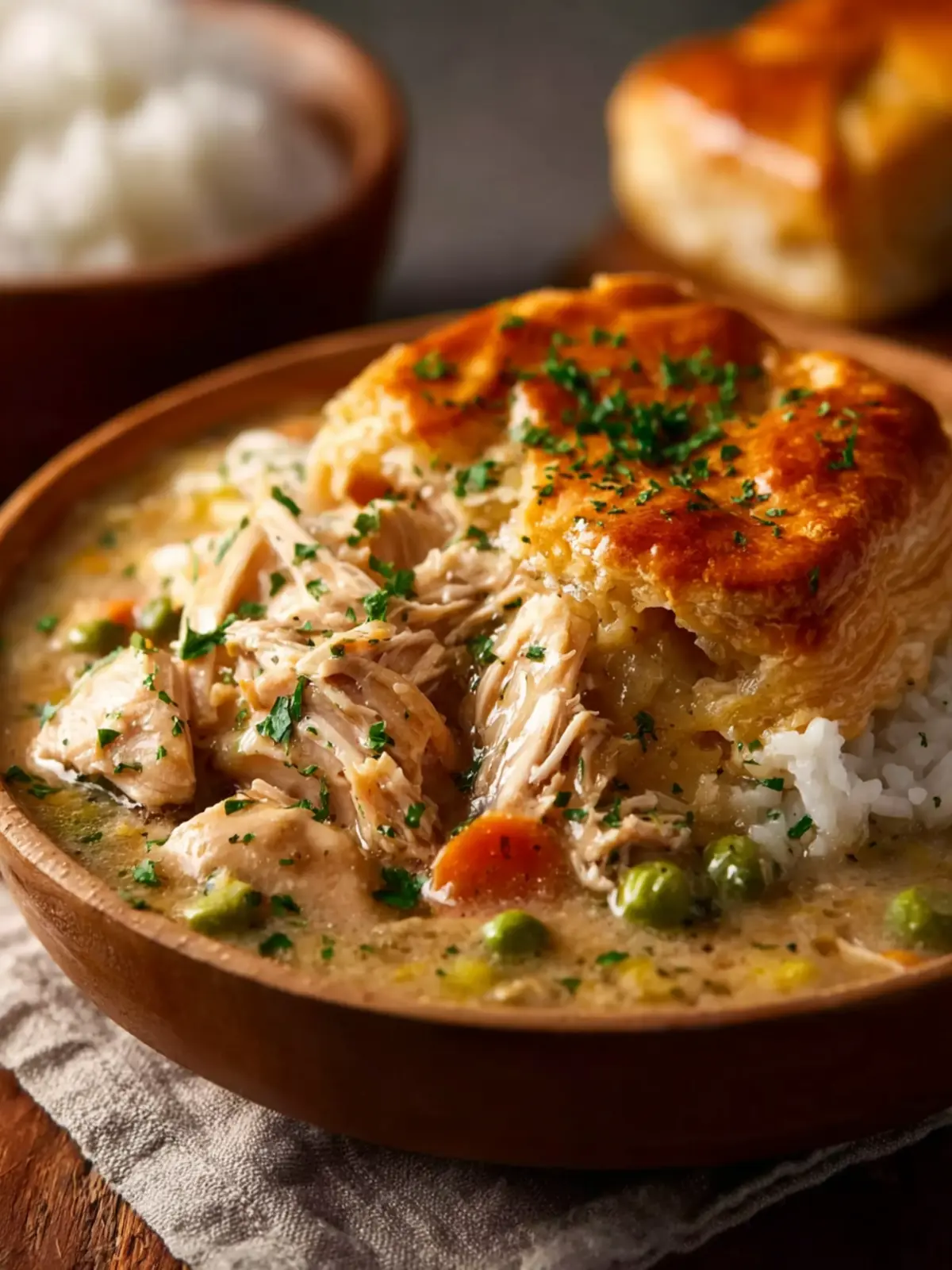 - Serve and Enjoy: Ladle the creamy chicken filling into bowls and top each one with a warm biscuit—or two. It’s like a hug in a bowl.