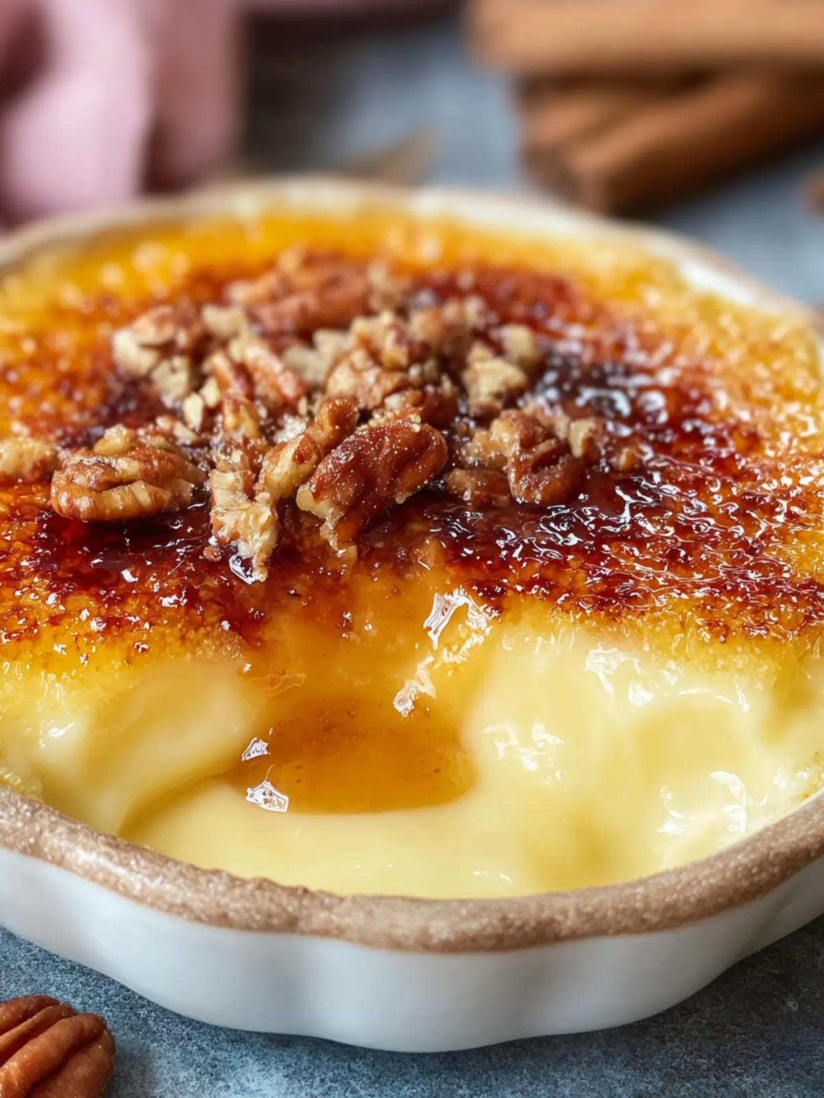 Pecans: Toasted pecans are not only a delightful garnish but also add a nutty crunch that contrasts beautifully with the silky custard. Opt for fresh, high-quality pecans to amplify the flavor.