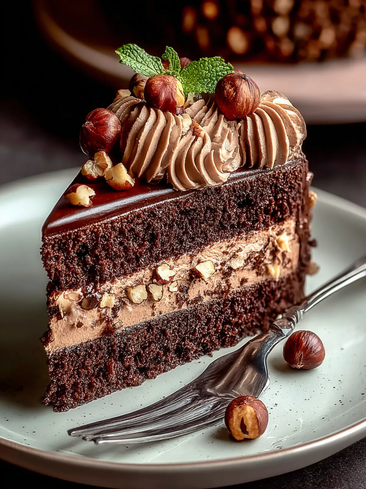 Gorgeous Presentation: Not only does this cake taste incredible, but it also looks stunning. Topped with a velvety mocha ganache and a sprinkle of toasted hazelnuts, it’s sure to impress at any gathering.