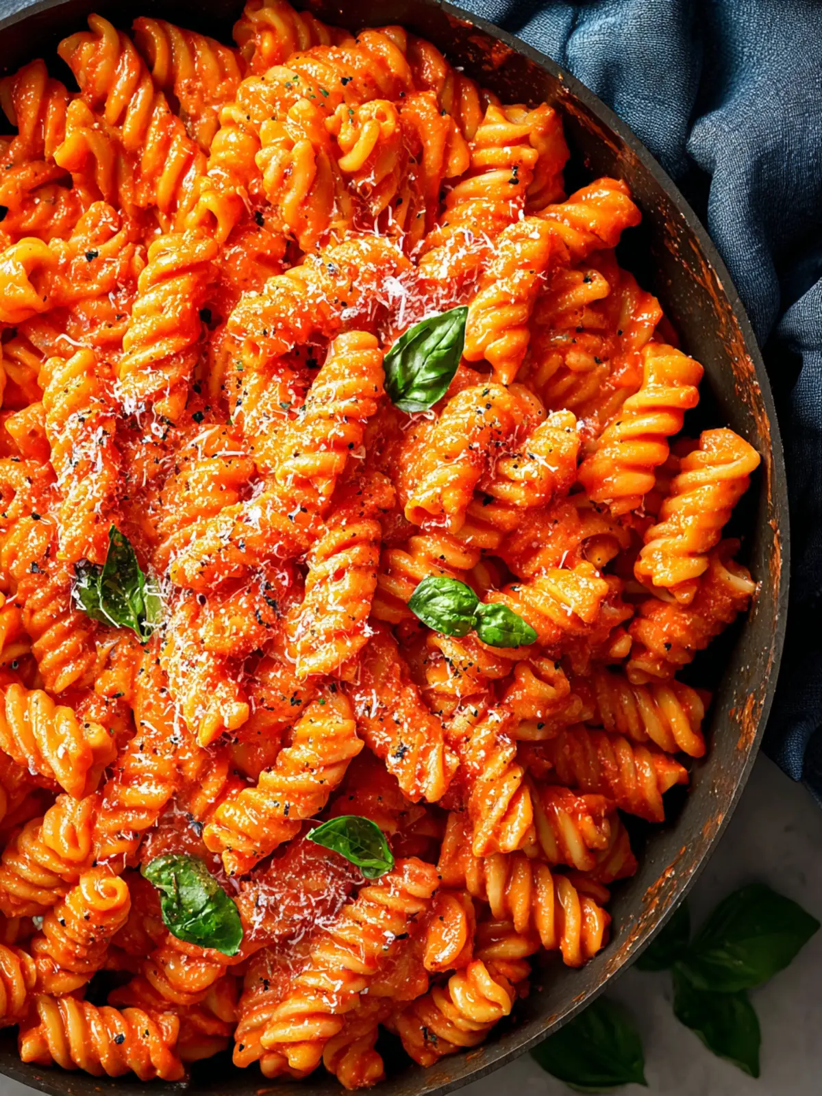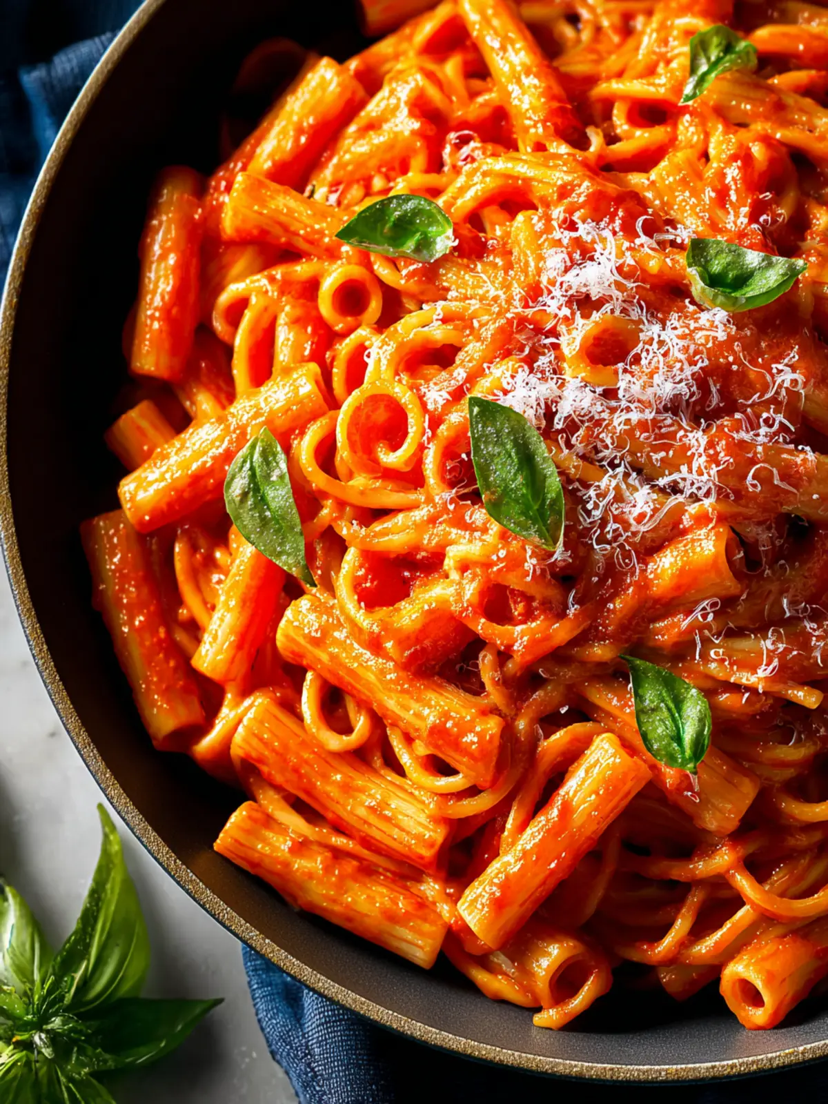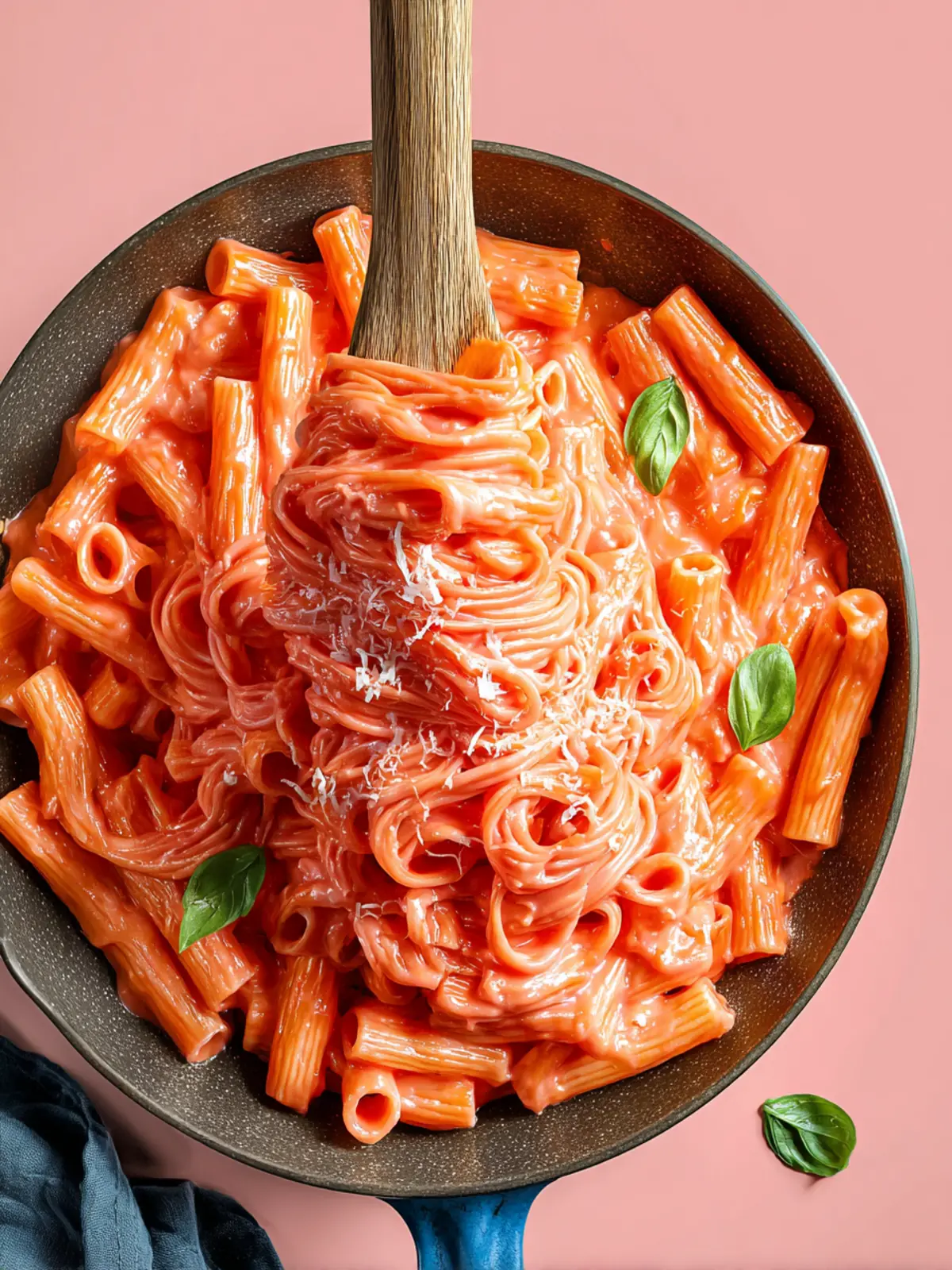 6. Serve Immediately: Plate your pink pasta while warm, garnishing with extra Parmesan cheese and fresh basil.