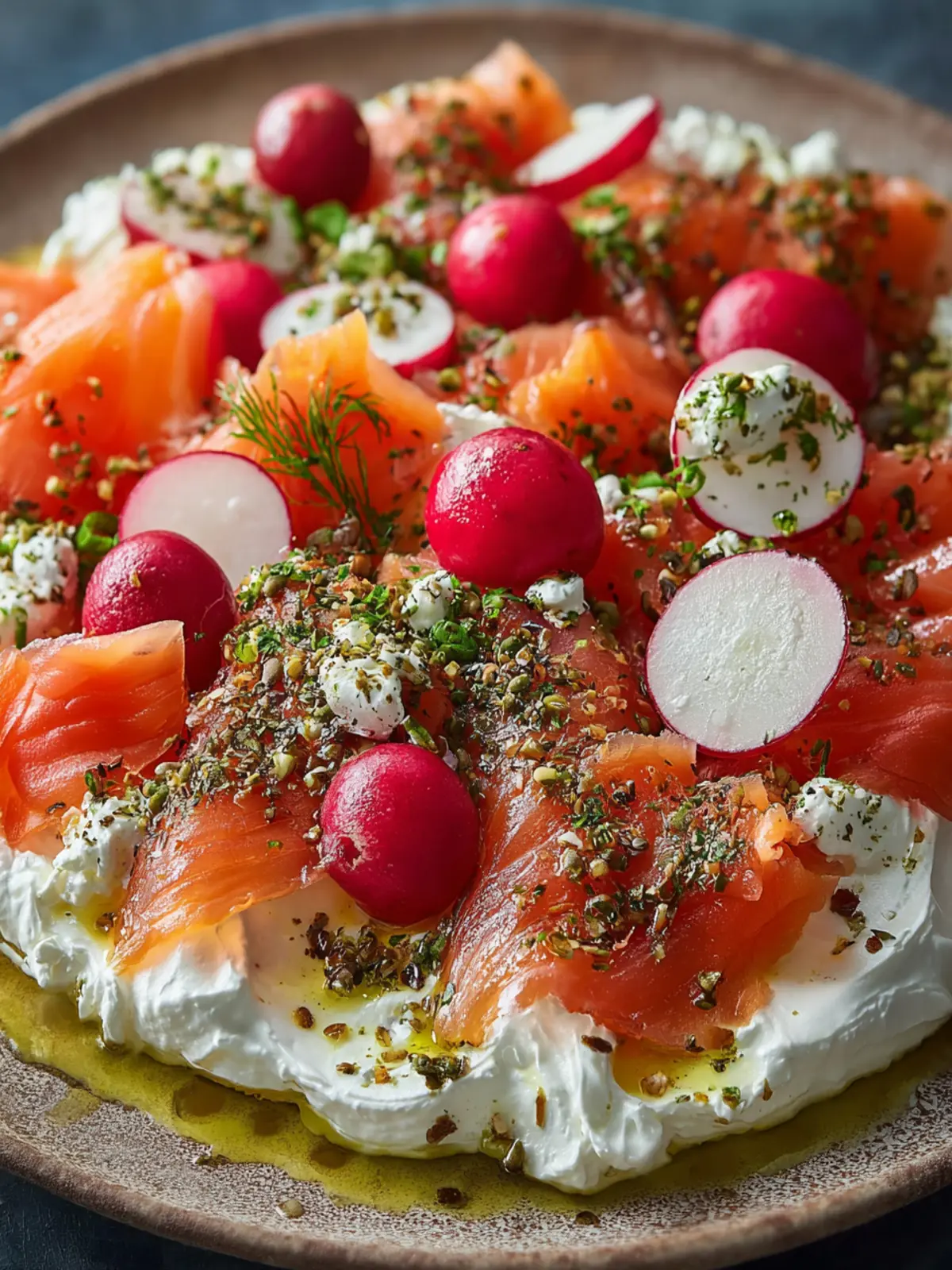 The Ingredients: The freshness of the ingredients is key to making your platter shine. Using smoked salmon gives you that satisfying umami flavor while the radishes add a delightful crispness. Drizzling a bit of olive oil and generously sprinkling za’atar brings everything home with a touch of herbal elegance.