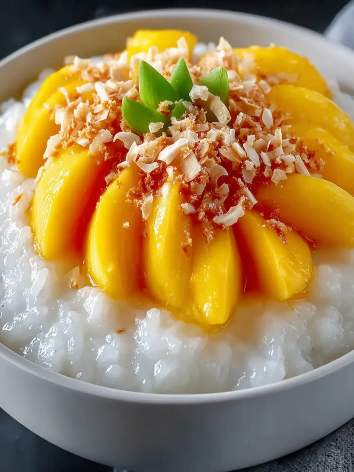Fresh Slices of Mango: For authenticity, always serve it alongside ripe, juicy mango slices. The sweetness of the fruit complements the coconut flavor of the sticky rice perfectly.