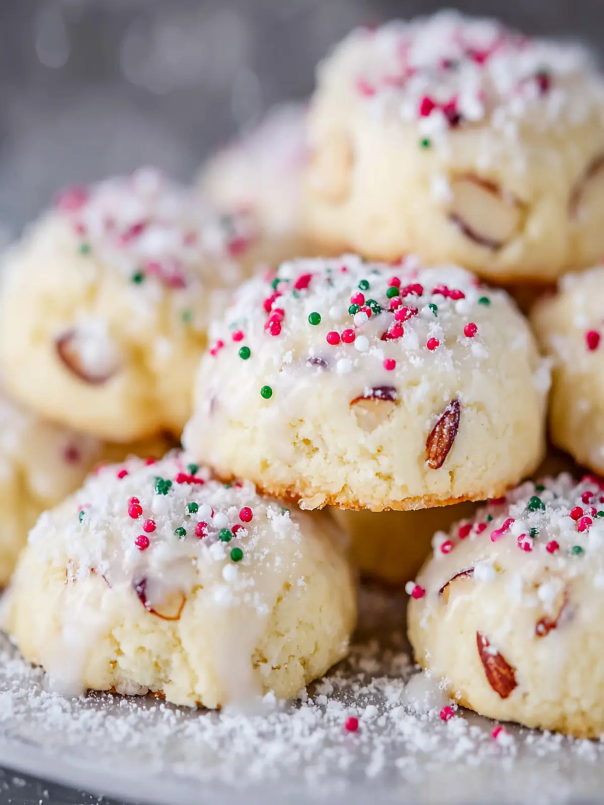 These cookies are more than just a snack; they capture the essence of the holidays with their sweet and buttery almond flavor. The sprinkles add a festive touch, making them visually appealing and great for cookie platters or gift-giving.