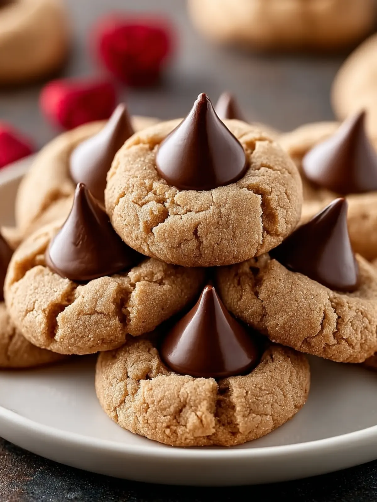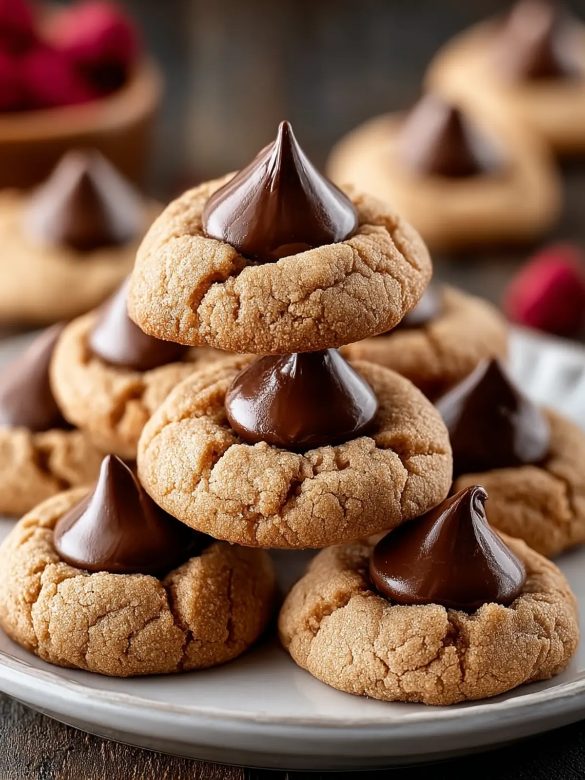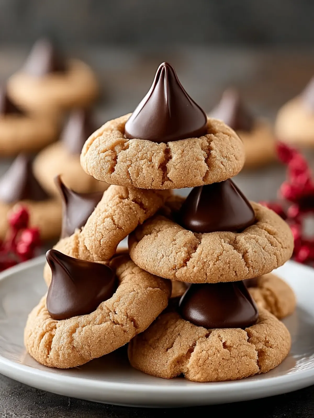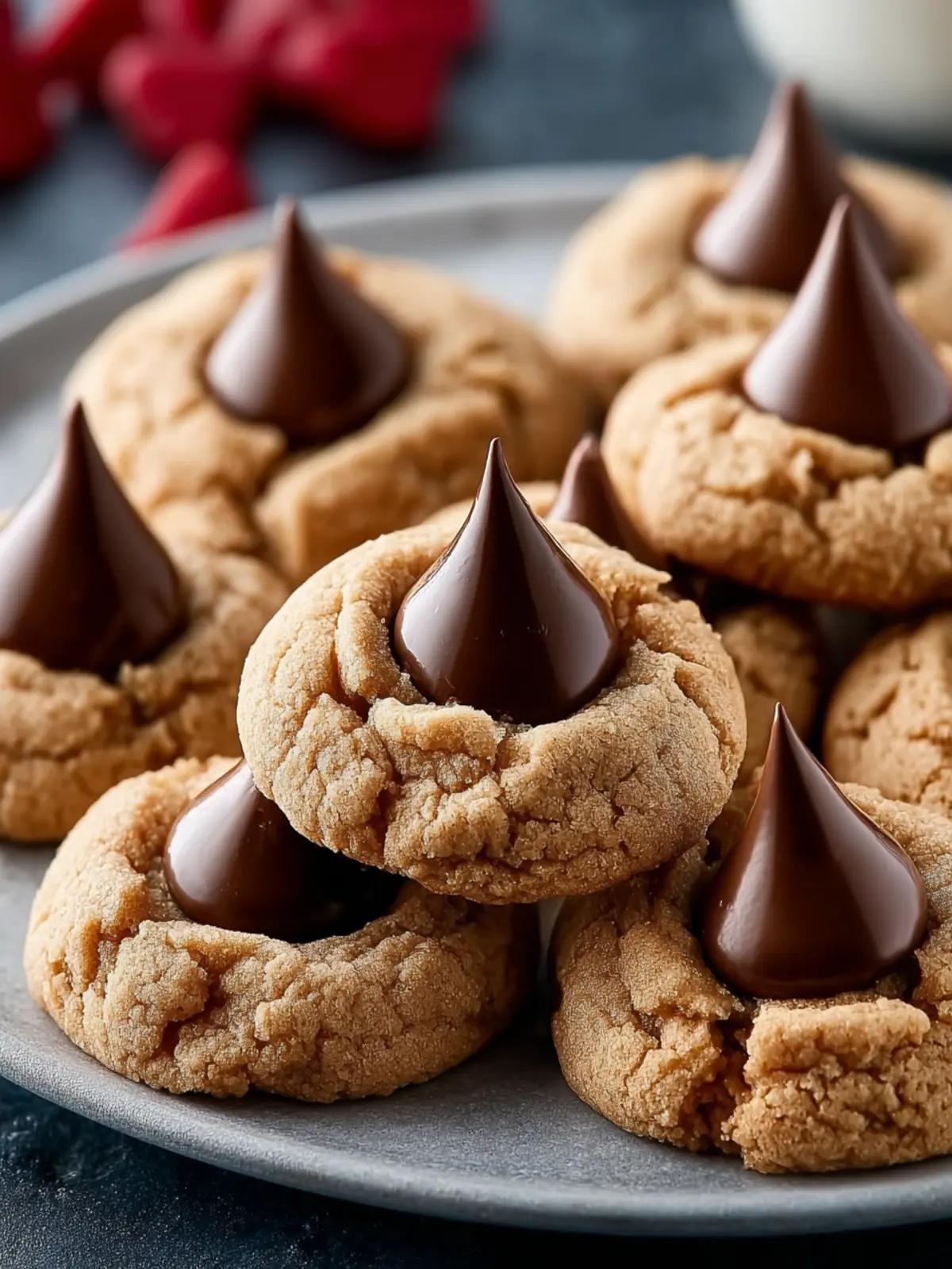 Chocolate Kisses: The chocolate kisses on top are the pièce de résistance! These melted chocolates make each cookie a delightful treat, combining the nuttiness of peanut butter with rich chocolatey goodness.