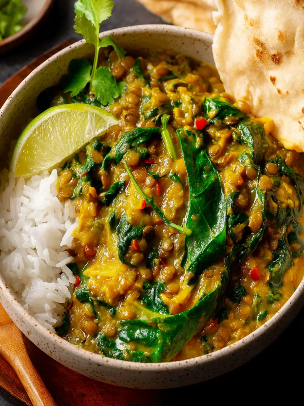 Wholesome Ingredients: With lentils and spinach as the stars, this curry is not just hearty but also brimming with nutrients. Lentils provide a great source of protein and fiber, while spinach is loaded with vitamins A and C, making every bite a boost for your health.