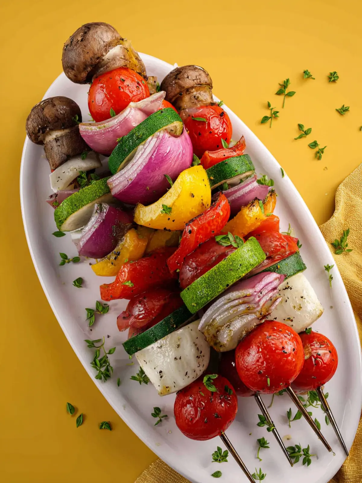Add Some Protein: For a more filling meal, consider skewering tofu, tempeh, or even marinated halloumi cheese alongside your veggies.